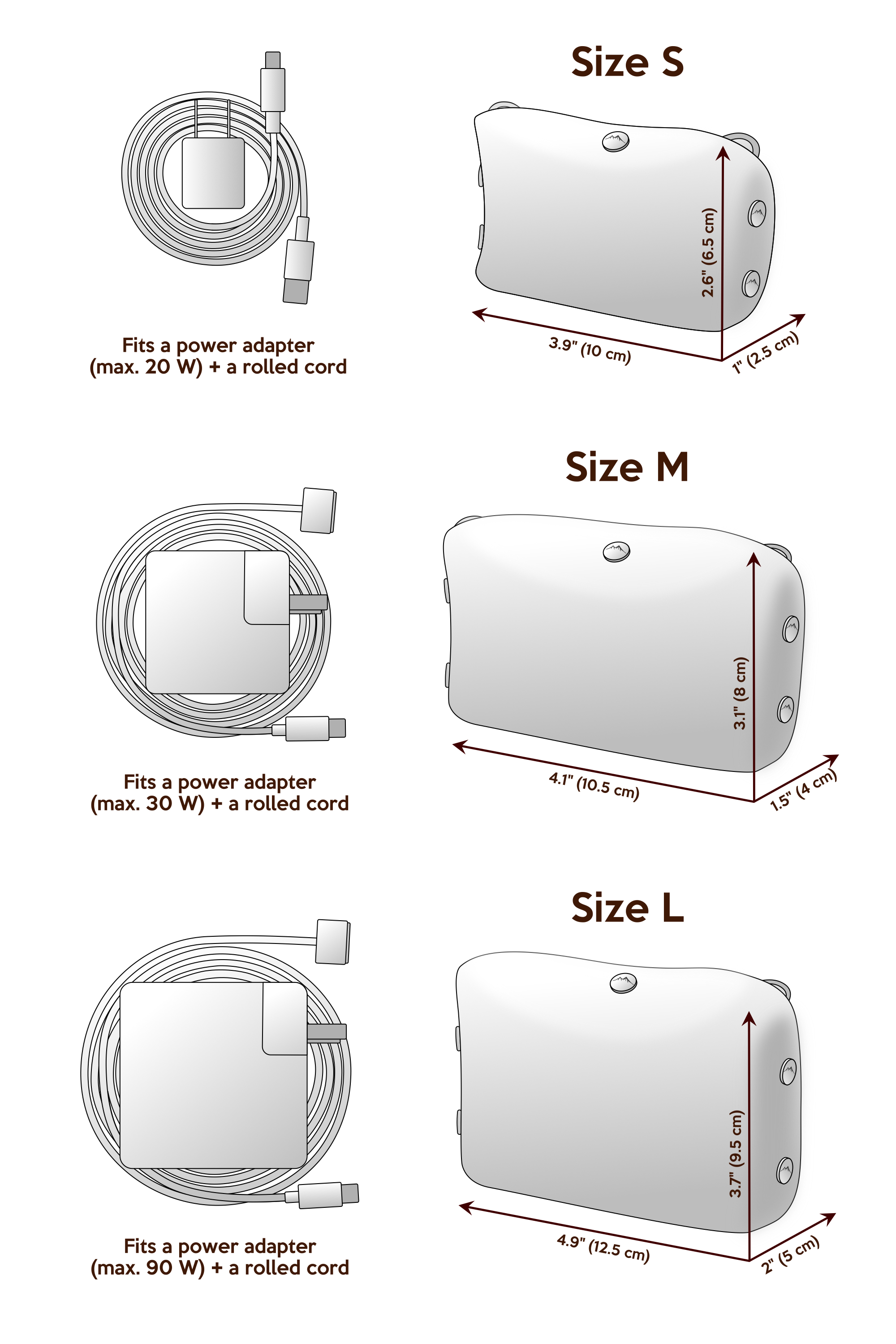 - Perfect for storing Apple Inc. power adapter and a rolled cord